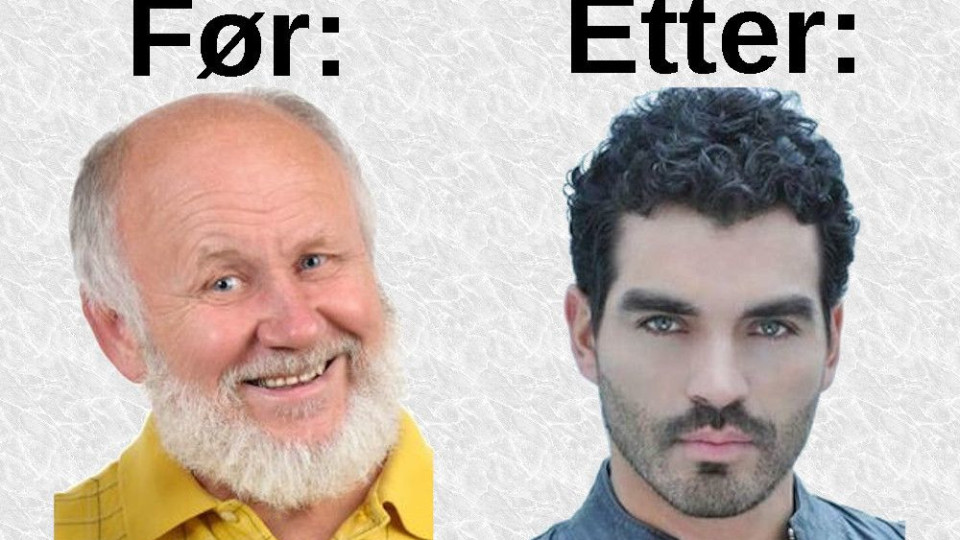- Akkurat, svarer Hattestad-Hårløs henrykt. - Og ikke bare det. Som du ser av bildene preger det personligheten også, og gir et mye yngre inntrykk.
