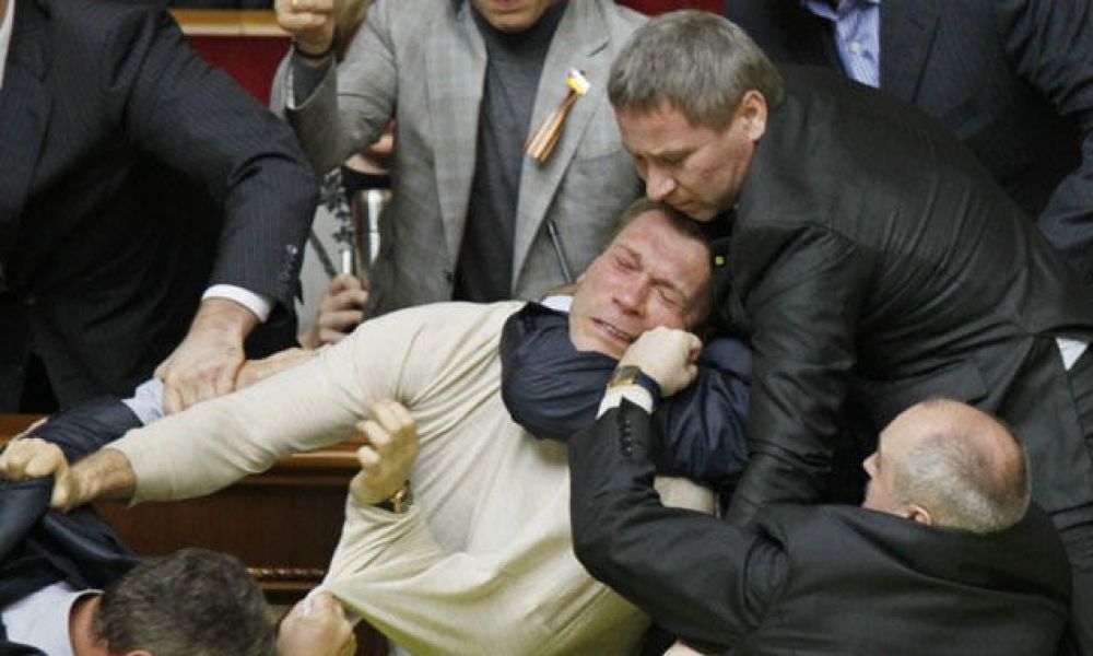 Med ansiktene vendt mot disse står henholdsvis Ta-Mai I Häcken, fra Oss med Yacht (OmY), Ronni Robbestad, fra Noahs Ark og den Herlige Hånd (N-Ahh), Børst Juksrud, fra Forskruddpartiet (FoP), og Guri Melsekk fra Rett Venstre (RV).